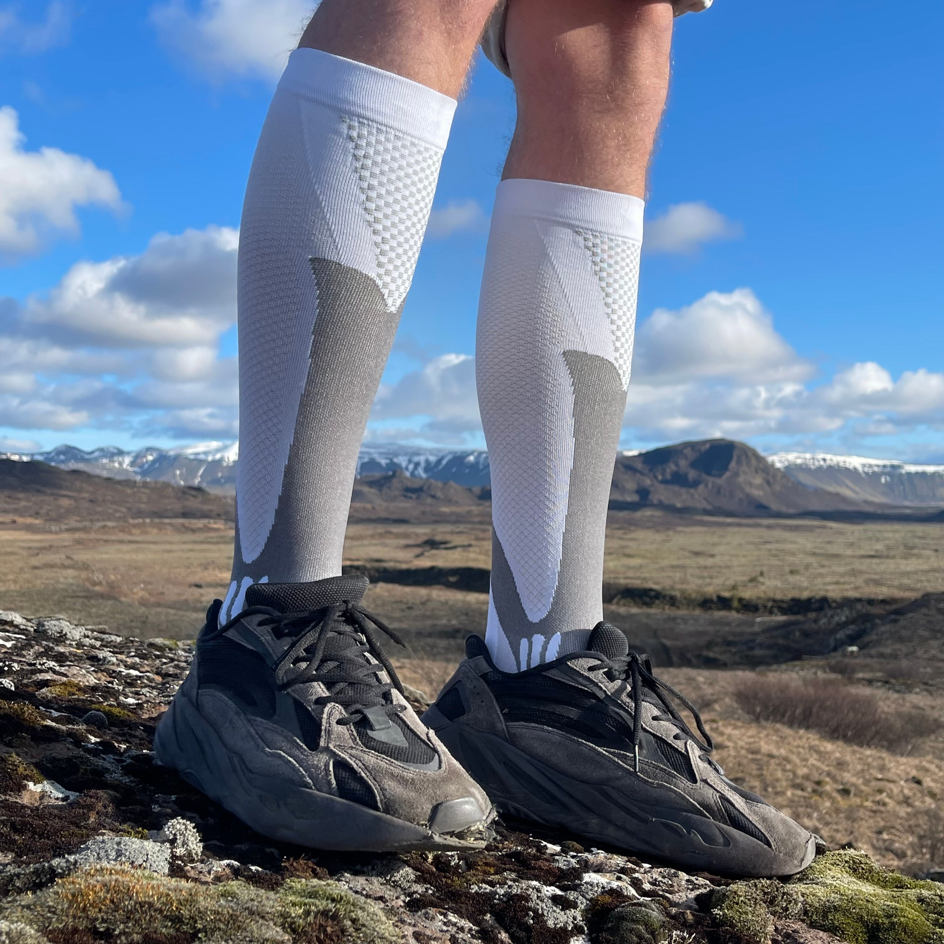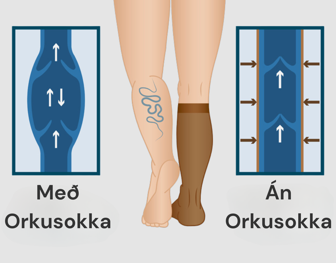 Orkusokkar geta aðstoðað við að koma í veg fyrir þessa bjúgmyndun með því að þrýsta létt á kálfann og fyrirbyggja þessa vökvamyndun í fótleggjunum.