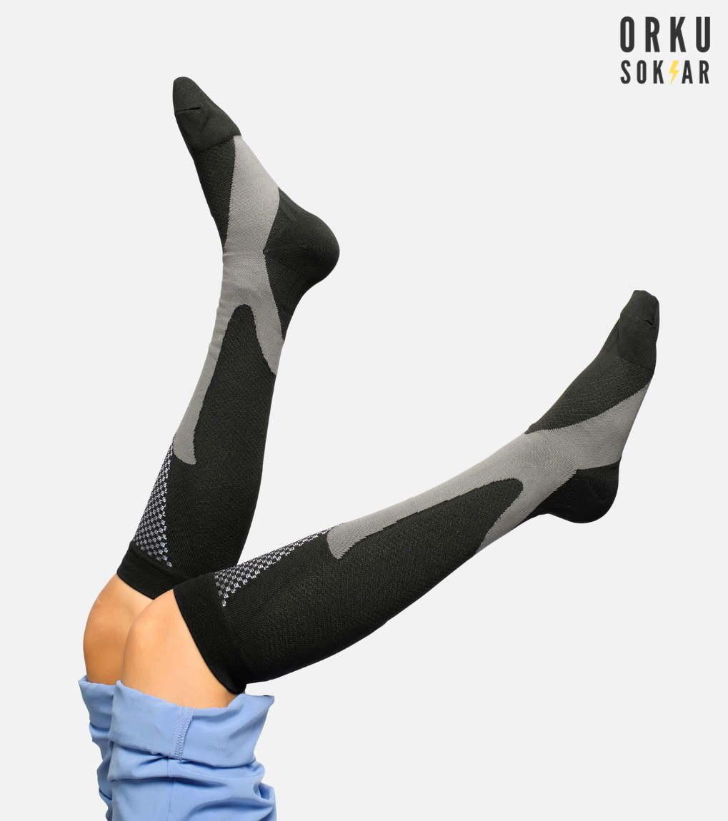 Orkusokkar eru hnéháir og teygjanlegir þrýstingssokkar sem hjálpa blóðinu að flæða til hjartans.